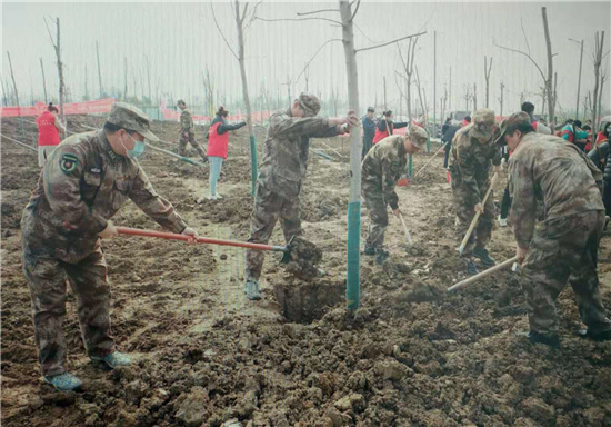 如意湖畔添新綠——項城市人武部參加義務植樹活動