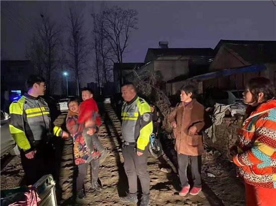 3月12日晚,鄲城縣交警大隊鐵騎中隊副中隊長張鑫值班過程中發現一位迷路小孩,張新等人想方設法把孩子護送回家。