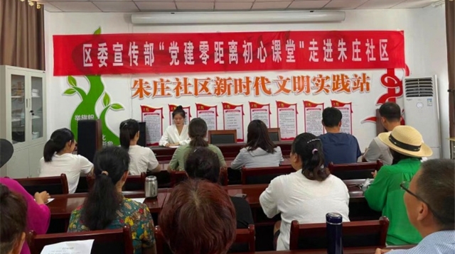 為推動黨史學習教育走深走細走實,7月9日下午,區委宣傳部在金海路街道辦事處朱莊社區開展“黨史教育進基層”暨“黨建零距離初心課堂”活動。