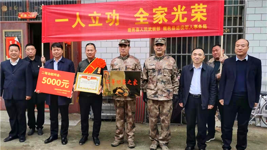 一人立功,全家光榮。3月19日上午,鹿邑縣試量鎮(zhèn)后楊樓行政村鑼鼓喧天,熱鬧非凡,鹿邑縣人武部、縣退役軍人事務局及試量鎮(zhèn)相關(guān)負責人一行,將立功喜報送到了二等功臣張國富的家人手中。