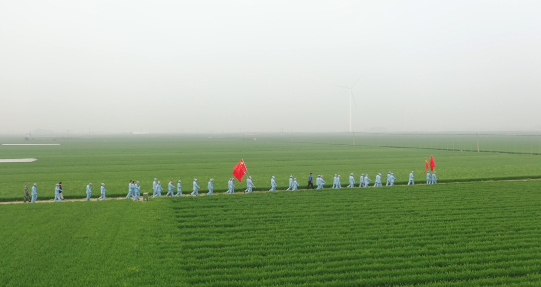 大家換上紅軍服裝,分為四個列隊進行整備,在拓展教官的帶領(lǐng)下,信心滿滿地走上新時代鄉(xiāng)村振興的“長征路”。