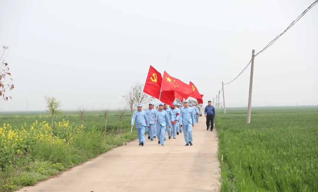 “我一定要跟著大部隊走,絕不掉隊,不給紅軍前輩抹黑。”剛剛做完手術(shù)的七一村黨支部書記何治安斬釘截鐵地說。在七二村,熱情好客的七里倉群眾不僅給“大軍”送來了西紅柿、黃瓜、茶雞蛋、香蕉等補給品,還表演了“祖國你好”、“美麗生活”等扇子舞,再現(xiàn)了當(dāng)年紅軍到哪都受人民群眾擁戴的情景,同志們的疲憊一下子煙消霧散.....按照拓展行程安排,在盆李村的“周口市第一個農(nóng)村黨支部舊址”,同志們進行了參觀瞻仰和重溫入黨誓詞等活動,回顧了歷史,緬懷了先烈,震撼了心靈,錘煉了黨性。
