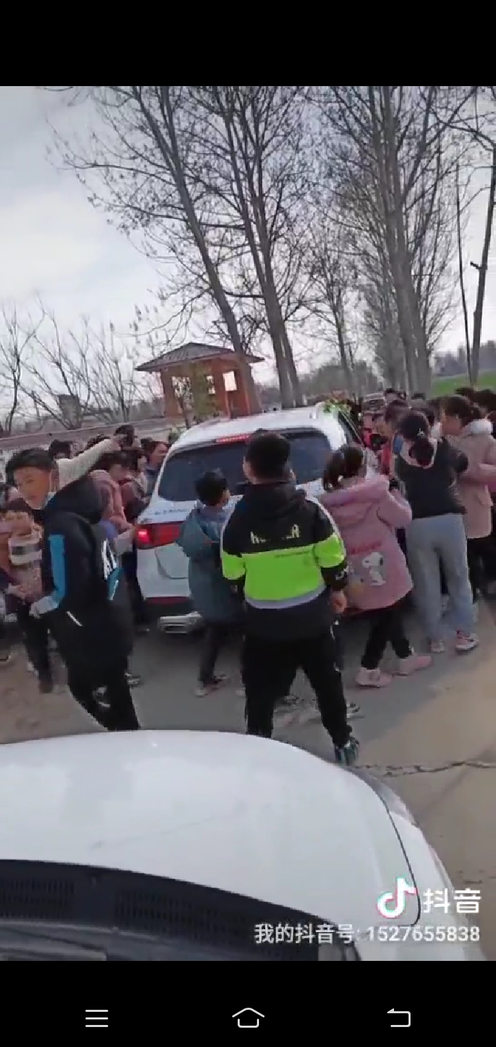 “我淚水一直在眼里打轉,現在心情都沒平復。”建廷廷說,“因為休假前給學生們發了喜糖,婚車路過時恰趕學生下課,正好遇見這群可愛的孩子,真的特別感動。眼前的情景也讓婚車上的老公感動不已,他忍不住拿手機記錄下了這一幕”。