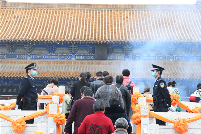 在太清宮、明道宮景區(qū)主要活動點,全力做好人流、車流疏導和受理報警求助等工作;執(zhí)勤民警還及時為走失兒童家長、行動不便的老人等提供熱情周到的服務;民輔警積極向過往香客宣傳“金鐘罩”防詐騙知識,耐心細致地手把手教群眾注冊“金鐘罩”;交警大隊根據(jù)職責任務設置了駐地警衛(wèi)組、機動應急組、事故應急組,大隊領(lǐng)導靠前指揮,因情施策,合理調(diào)度,全力保障活動現(xiàn)場道路交通安全暢通。③2