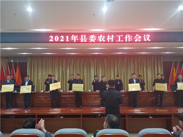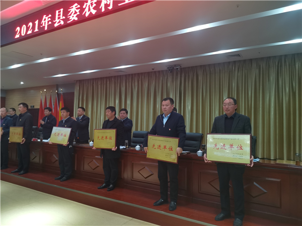 郭俊濤就貫徹落實會議精神及下一步農村工作進行具體安排部署。縣委副書記許四軍宣讀了縣委、縣政府關于表揚2020年度農業農村工作先進單位、先進個人的通報。會議還對受表彰的先進單位代表進行了頒獎。