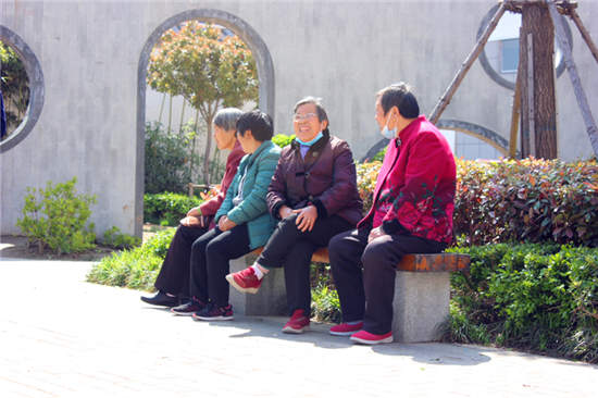 假日里,中心城區(qū)街頭游園里花開正好,春意濃濃,市民趁著好時光,來此散步、運(yùn)動、聊天,暢享美好春光。