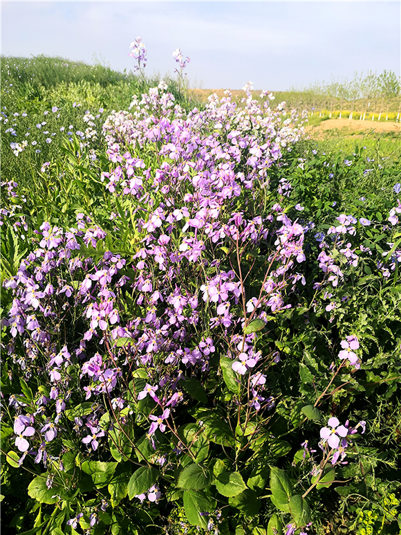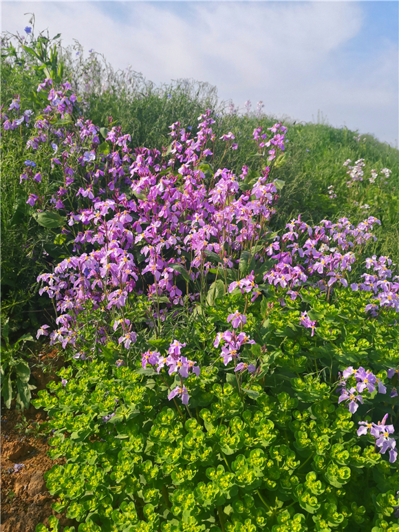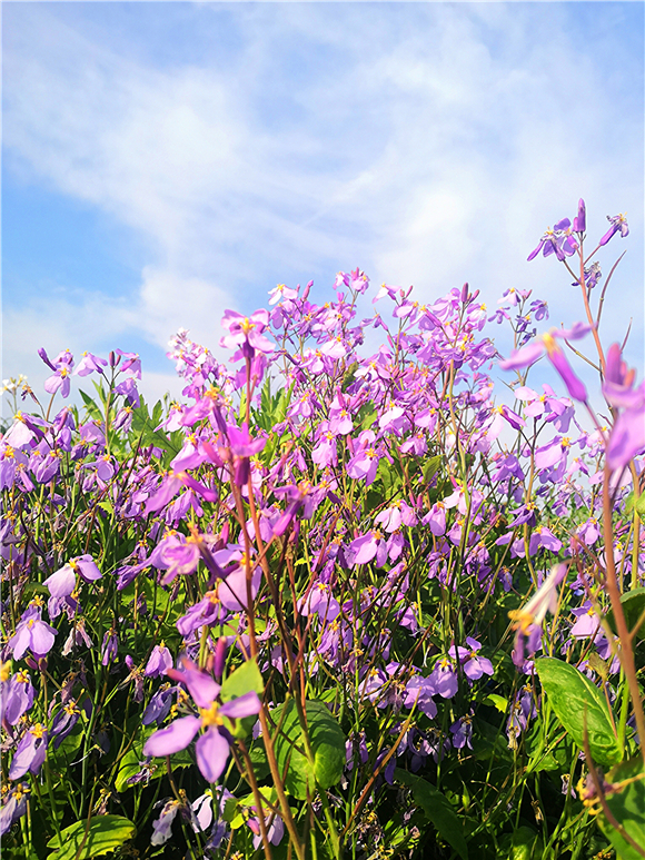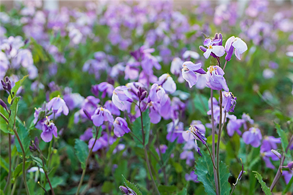 據了解,諸葛菜也叫二月蘭,因早春農歷二月前后開花,所以叫二月蘭,花開溫柔,娟秀,清雅,很是招人喜歡。而且具有較強的耐寒性與適應性,自繁能力比較強,一次播種能年年自成群落,能夠有效控制裸地揚塵起沙、抑制雜草生長。諸葛菜花花期相當長,能夠從早春時節,一直開到暮春初夏間,當百花盛開時,它依然露著笑臉。因此著實是春天里的“早到遲退”之花。③5