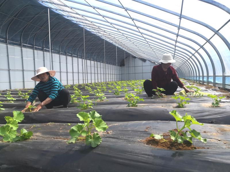 “當下,正逢‘吊秧’香瓜生長旺盛的時候,這幾天,我和馮大姐一直在大棚里忙活,每天有事兒干、有人陪說話,還可以掙到60元的工錢,就在家門口,多好啊!”4月8日,在半截樓村新建的溫室大棚內,65歲的李愛蓮一邊忙著為瓜秧打岔,一邊對記者說。