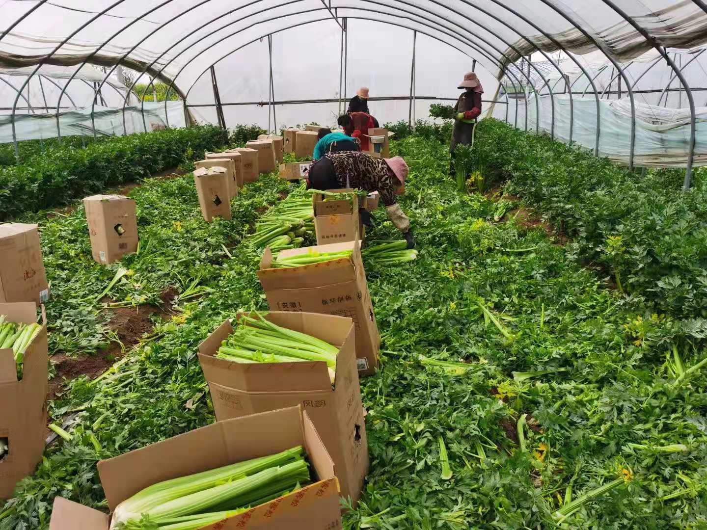 走進(jìn)萬(wàn)畝芹菜種植基地蔬菜溫棚,一股傘形科植物特有的芳香充滿鼻腔。抬眼一瞅,裝箱好的芹菜整齊碼放成垛,溫棚深處,還有大片未收割的芹菜,挺直鮮嫩,綠意蔥蘢。大棚里菜農(nóng)們收割、打包、貼二維碼一氣呵成,道路兩旁十幾名從全國(guó)各地趕來(lái)的收購(gòu)商從菜農(nóng)手中接過(guò)包裹急忙裝車(chē)。