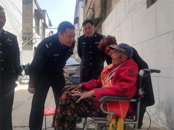 一大早,該所黨員民警身著戎裝,排著整齊的隊(duì)伍,分別前往荷花路派出所轄區(qū)的閆莊社區(qū)、荷花社區(qū)、前王營等社區(qū),探望慰問年逾花甲的抗戰(zhàn)老英雄,聆聽他們?cè)诳箵羟致缘膽?zhàn)斗歲月里浴血奮戰(zhàn)、不屈不撓的感人故事。在戰(zhàn)斗英雄尤洪亮家中,民警深切感受了那場(chǎng)保家衛(wèi)國反擊戰(zhàn)的慘烈,看到了新時(shí)代最可愛的人。