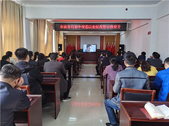 為進一步加強黨風廉政建設,持續推進以案促改制度化常態化,4月26日下午,市商務局組織局機關及二級機構全體人員,集中觀看以案促改警示教育片《正風反腐就在身邊》第四集《嚴正家風》,不斷提升黨員干部廉潔自律和拒腐防變意識。