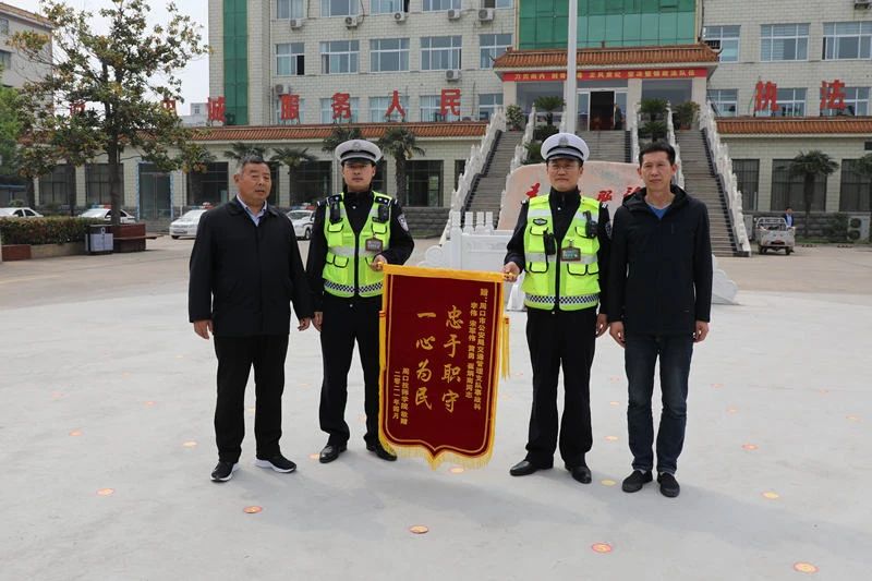 李偉、宋軍偉、黃勇和崔炳南忠于職守、以人為本、主動作為的工作作風,為學校師生真心實意辦實事、辦好事的工作精神,受到技師學院師生的一致好評。為此,4月23日上午,周口技師學院全院師生特意訂制一面錦旗以示對民警的感謝。②18