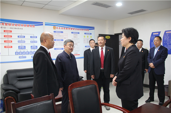 4月30日下午,市委常委、政法委書記路云到沈丘縣法院就隊伍教育整頓工作進行專題調研指導。沈丘縣委書記皇甫立新,縣委常委、政法委書記段然陪同調研。