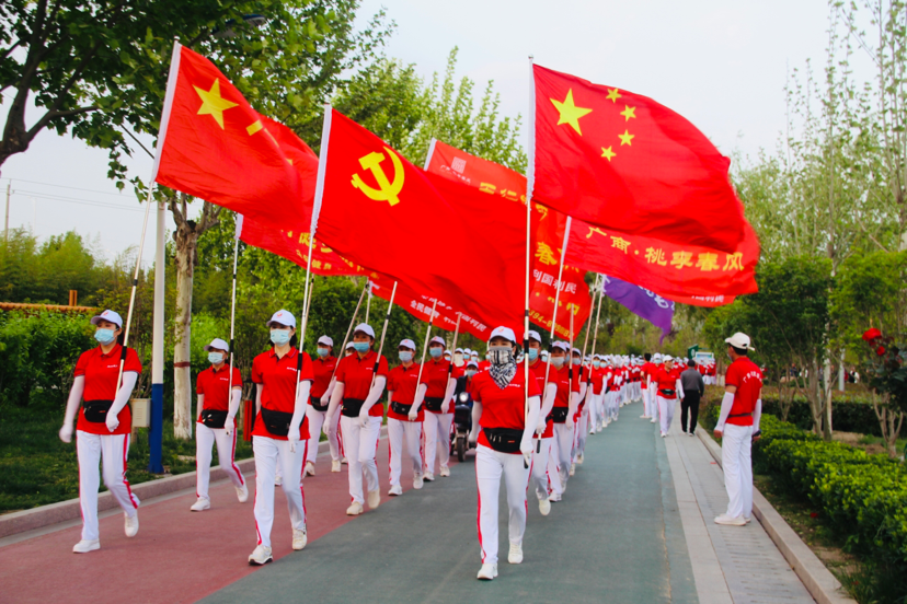 我運動、我健康、我快樂。為慶祝“五一”國際勞動節,5月1日早晨,鄲城縣近百名健步運動愛好者齊聚人民公園,以運動健步走的形式向黨的百年華誕獻禮。
