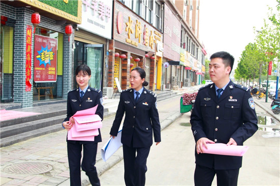 連日來,鄲城縣公安局反詐宣傳如火如荼,民警王冰等奔走在各社區、商場、廣場、公園、街道、沿街商鋪,廣泛宣傳反詐常識,推廣注冊金鐘罩,散發宣傳頁,張貼宣傳通告,守護好群眾的“錢袋子”。