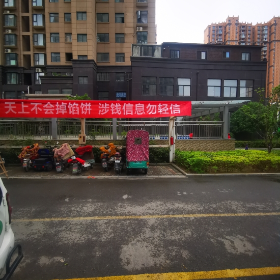 據介紹,“金色東方”小區建成于2014年,占地120畝,居住人口2516戶,共8176人。廣場是小區里最熱鬧的地方。這里不僅擺放著詐騙案例展板,而且LED大屏上反復播放“局長說反詐”視頻,時刻提醒居民繃緊防詐弦。通過張貼標語、擺放展板、播放視頻等形式,“金色東方”小區營造了全方位反詐的濃厚氛圍,基本達到“處處有提醒”的效果。據悉,2月份以來,該小區未發生一起電信網絡詐騙案件。