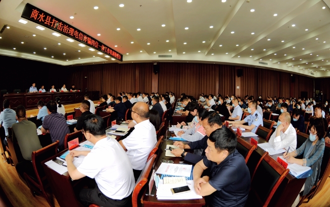 今年春節以來,商水縣每個行政村(社區)由一名包村民警、一名駐村輔警、一名包村鄉鎮干部、一名行政村黨支部書記組成村級反詐騙宣傳治理“四位一體”領導組,組織開展反詐騙宣傳、重點人員管控等工作,取得明顯成效。4月,全縣詐騙案件同比下降23.2%;受騙損失下降8.6%。圖為5月26日,全縣打擊治理電信詐騙“四位一體”推進會現場。記者 付永奇 通訊員 郭利軍攝