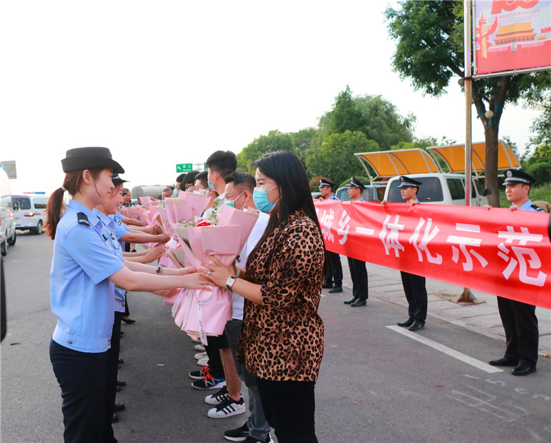 當日19時許,示范區二級調研員丁有亮,示范區公安分局黨委書記、局長何學民等同志前往迎接,歡迎勝利歸來的抓捕民警。當抓捕組車輛駛出高速路口時,現場響起熱烈的掌聲。丁有亮、何學民與參戰民警一一親切握手,對凱旋的民警表示歡迎和祝賀,民警代表將象征勝利和榮譽的鮮花獻給抓捕組民警。丁有亮表示向不辱使命、不畏艱險、勇打勝仗的參戰民警表示慰問,并要求他們把握戰機,繼續擴大戰果,再接再厲,再立新功。何學民指出,示范區公安分局將乘勢而上、提振士氣,縱深開展“迅雷”行動,出重拳打擊電信詐騙犯罪行為。