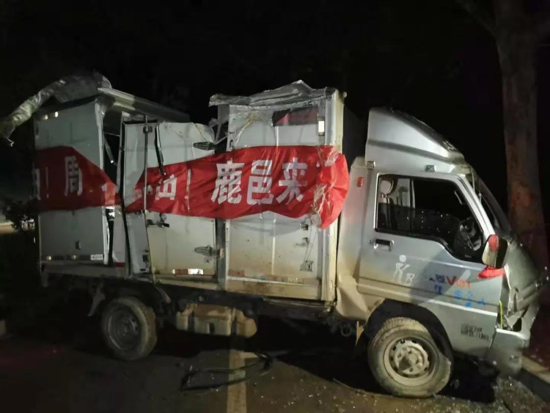 “拉一車營養快線,太重,拐彎撞到樹上翻車了,樹沒事車報廢了,人沒死算是幸運。他還算輕的,還有一個隊員脖子被玻璃扎了,胳膊也抬不起來了。”
