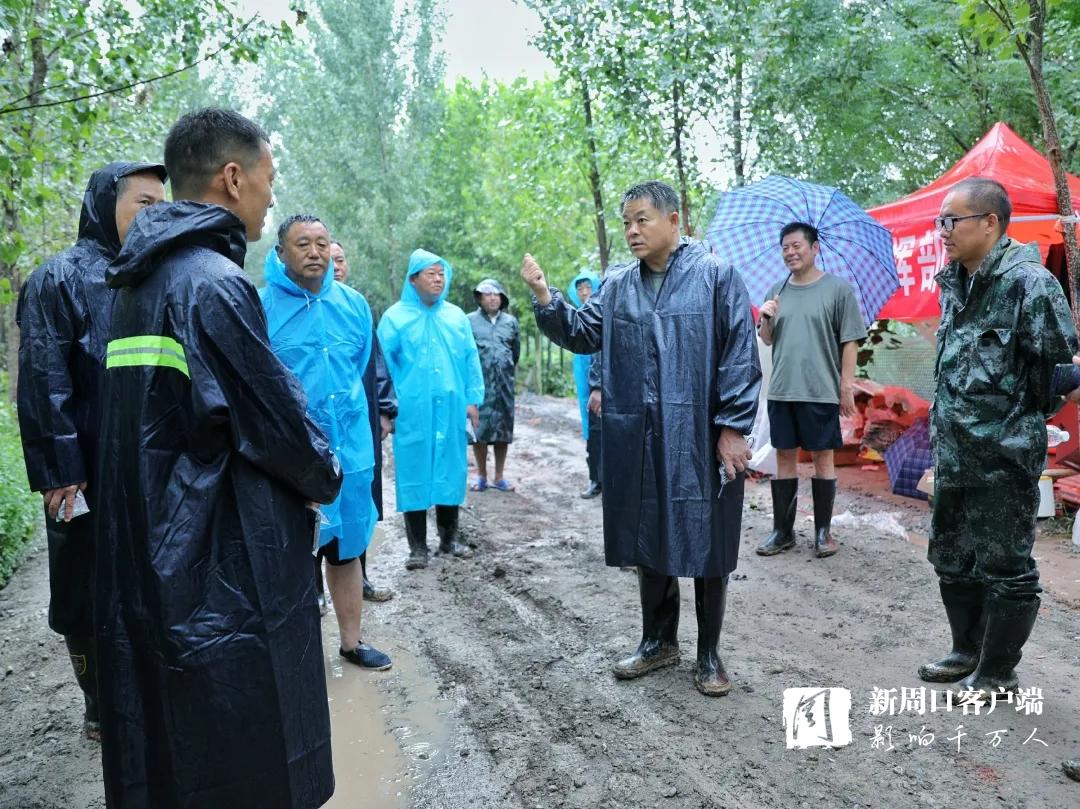 7月28日上午,扶溝縣委書記孫紅偉冒雨到賈魯河大堤險工險段實地督導保堤護堤工作。