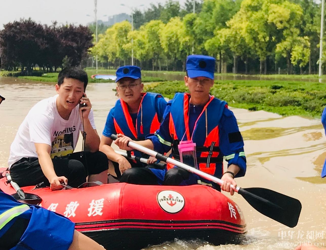 7月25日6:00,他們一行從牧野區(qū)轉戰(zhàn)至情況更為危急的衛(wèi)輝市。10:00,這個城市整個街道被淹,最深處有兩米深。許多井蓋已被洪水沖走,路面上暗潮洶涌、打著漩渦,令人心驚膽戰(zhàn)。救援過程中,有一個嗷嗷待哺的男嬰,在被轉移到救生艇后,立刻停止了哭鬧,乖乖躺在媽媽懷里,仿佛感到安全極了。一個老太太哭著問了楊浩霖的名字,拉著他的手說:“沒有你們相救,我早就被淹死!好孩子,我會永遠記得你的名字。”