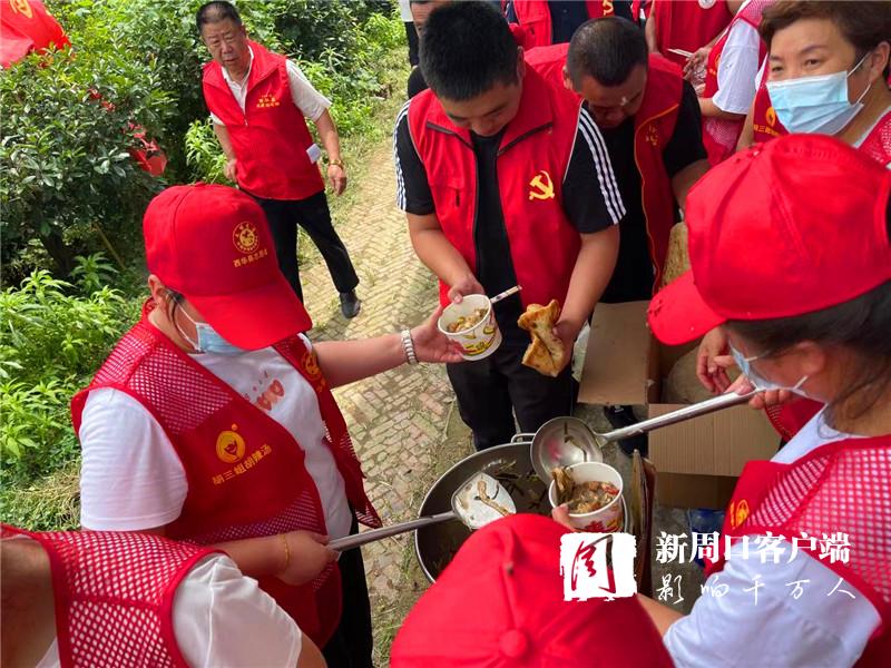愛心涌動顯真情。三所樓村、后石羊村、黃橋村、裴莊村、肖橫村等自發成立了防汛救災志愿者服務隊,特別是三所樓村支部書記李位霞帶領村志愿者每天炕油饃、燉雞子等,為縣應急救援物資儲備點工作人員和志愿者送去愛心餐;后石羊村志愿者也自發為儲備點送去飯菜,并幫助裝卸救災物資;黃橋村志愿者幫助儲備點和鄉黨委、政府裝卸物資,他們都是無怨無悔、真情奉獻。還有一些不愿透露姓名的黃橋籍和外地愛心人士也捐贈生活物資,他們有的是企業老板、退役軍人、有的在湖北、廣州、鄭州、周口等地工作,主動為防汛救災伸出援助之手。②5