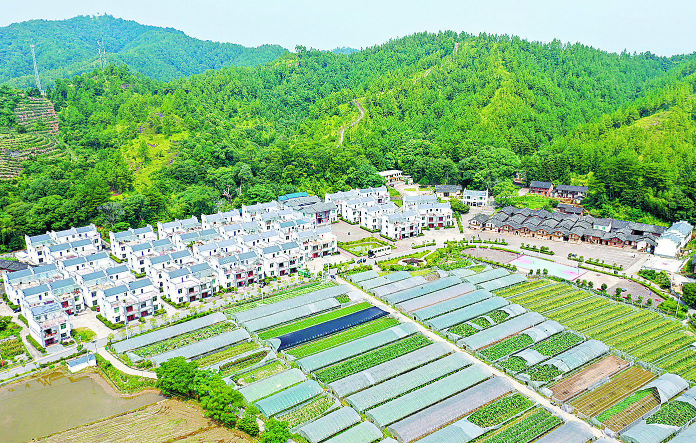 2012年6月,《國務院關于支持贛南等原中央蘇區振興發展的若干意見》出臺實施,華屋迎來了翻天覆地的變化。如今,華屋的低矮土屋早已拆了,取而代之的是66套嶄新的小康樓;村史樓前,一排排蔬菜、水果大棚鱗次櫛比,棚內瓜果生機盎然;村莊左側特意保留的七棟土坯房整飾一新,已開發為紅色旅游景點。產業興旺,小康夢圓,華屋人過上了安居樂業、富裕幸福的火紅日子。