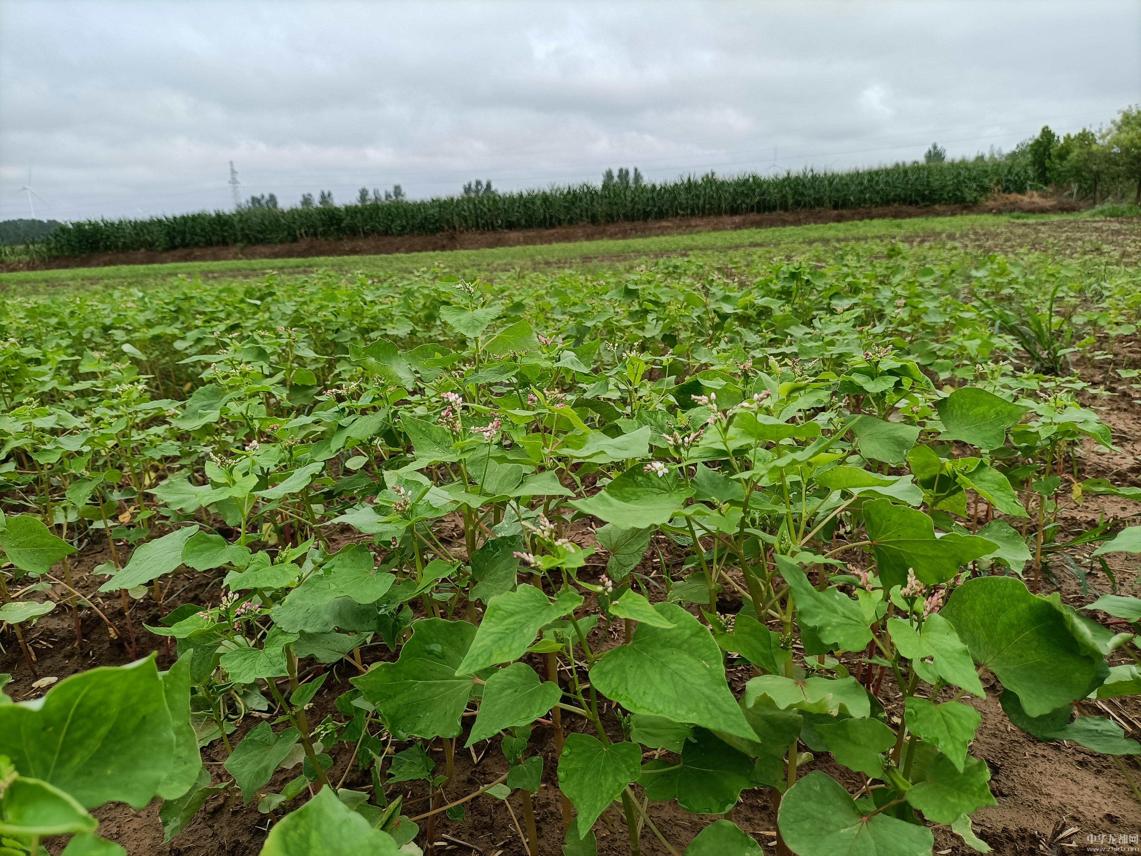 田里是災(zāi)后補(bǔ)種的水果玉米和蕎麥,他指著田里的綠苗,從西向東給記者依次介紹:“西邊的玉米苗最高,你看都長(zhǎng)到9葉1芯了,是7月31日播的;這邊稍矮一些,是8月3日種的,東邊更矮的是8月6日種的。當(dāng)時(shí)是,田里的積水排除一塊耕種一塊,等最東面的地塊可以栽種時(shí),已經(jīng)過了水果玉米適播期,我就從內(nèi)蒙古引進(jìn)苦蕎種子,種了下去,你看已經(jīng)開花了。”