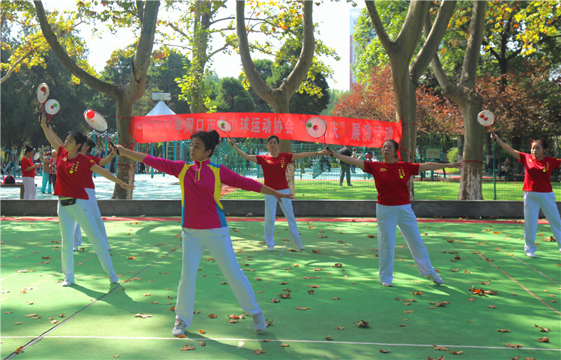 9月30日上午,市柔力球運動協會在周口人民公園內舉行迎國慶柔力球展演活動,來自人民公園雙拍雙球柔力球隊、示范區柔力球隊、中心區柔力球隊、人民公園柔力球隊和競技柔力球隊的柔力球愛好者揮動球拍,以良好的精神風貌展示了柔力球規定套路和對抗訓練動作等,為國慶節獻禮。