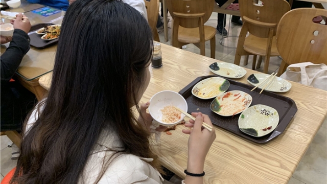 在周口大道與慶豐路交叉口的王留長小籠包店,墻上張貼著提倡使用公筷的宣傳標語,前來就餐的顧客自覺排隊,服務員主動建議顧客適度點餐。
