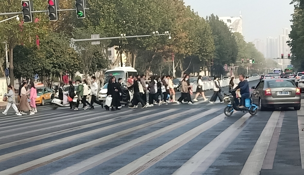 近日,在周口城鄉一體化示范區人和路和平安路交匯口,一群身穿印有“周口交通技師學院”字樣紅色馬甲的忙碌身影引來眾多路人注目。