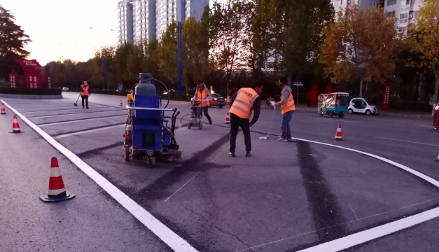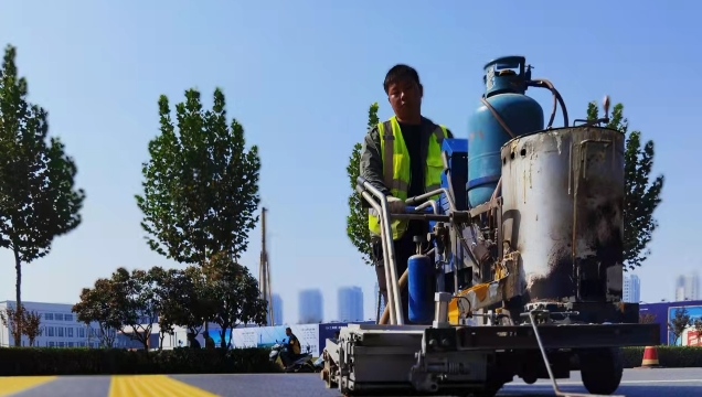 ?11月9日17時許,記者在周口市中心城區文昌大道與中原路交叉口看到,施工人員正在對交叉路口上的交通標志線進行施劃,規范車輛和行人通行秩序,保證交通安全暢通有序,方便群眾出行。