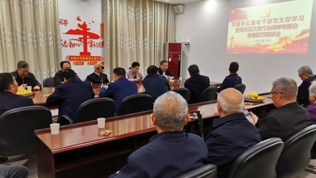 10月14日,市委辦公室召開“九九重陽節(jié)”老干部座談會,聽建議,敘情誼,共慶重陽佳節(jié)。