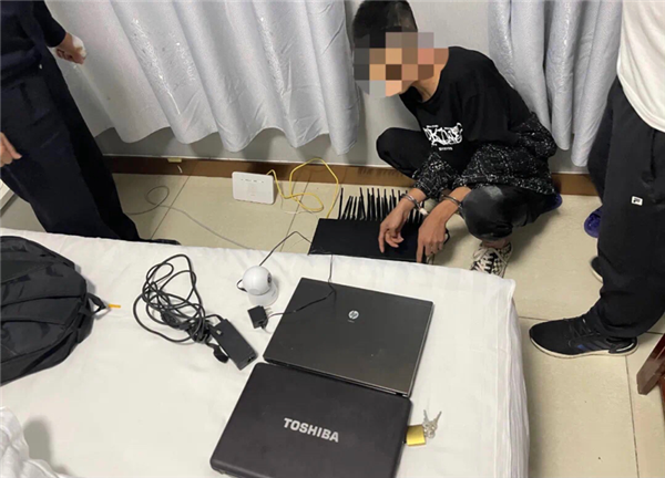 經(jīng)過3天3夜的蹲守,辦案民警摸清了犯罪嫌疑人的活動軌跡,10月13日晚上,吳臺派出所所長朱浩宇帶領(lǐng)民警賈坤陽等人果斷出擊,成功搗毀該涉詐窩點,將嫌疑人覃某宗和陳某欽抓獲,查獲“GOIP”設(shè)備1臺、電腦2臺、手機2部、路由器1臺、攝像頭1個。
