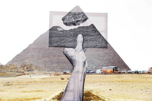 這是10月21日在埃及吉薩金字塔景區舉辦的藝術展上拍攝的一件藝術作品。首屆金字塔國際藝術展10月21日在埃及吉薩金字塔景區開幕,來自埃及、美國、俄羅斯等國的十余位藝術家在景區內露天展出了大型雕塑等藝術作品。新華社發