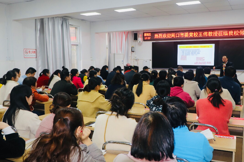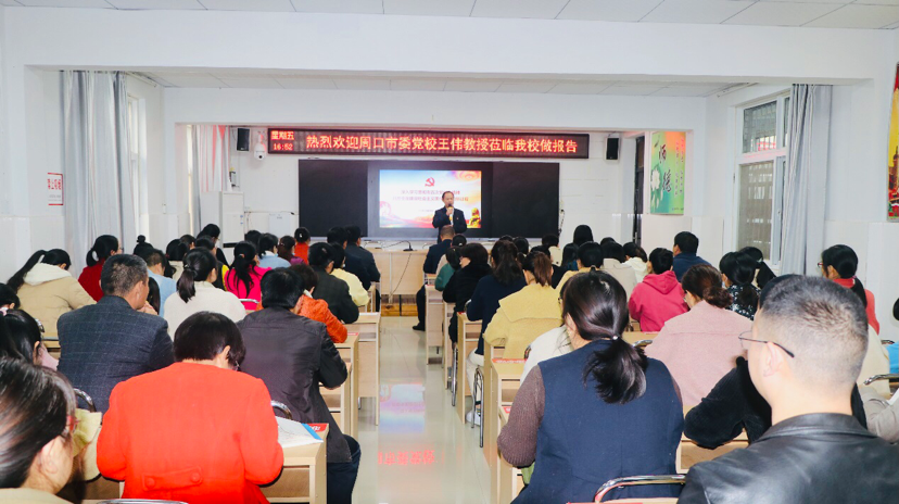 宣講會上,市委黨校宣講團講師王偉以“深入學習貫徹市五次黨代會精神、開啟全面建設社會主義現代化周口新征程”為主題,從充分認識市五次黨代會的重大意義、準確把握市五次黨代會的精神要義、全面落實市五次黨代會的目標任務三方面,詳盡解讀了市五次黨代會主旨報告的精神實質和豐富內涵。整場報告脈絡清晰、論述深刻、內容豐富,既有深入淺出的理論闡述,又有結合我市發展的實例分析,更有教育實踐層面的對策思考,為該校教職工深入、完整、系統地領會市五次黨代會精神,有力推進貫徹落實黨代會精神提供了一把“金鑰匙”。