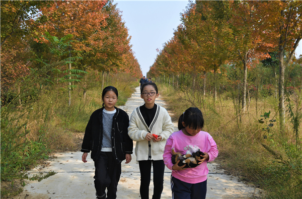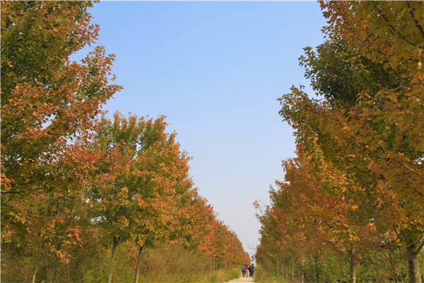 霜降過后,層林盡染。商水縣張明鄉炎坤種植合作社千畝苗圃里的紅葉石楠、五角楓、紅冠紅楓、法桐等數十種苗木葉子開始變得斑斕多彩,和路邊野蒿、地上的草坪、天上潔白的云朵形成豐富的景觀層次,吸引了周邊大批游客前來游玩賞秋。
