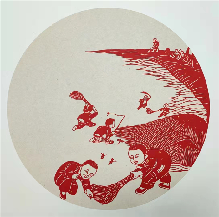 透過紅紙,有的孩童正神采飛揚地玩捉迷藏,有的正有模有樣地幫著長輩干農活,還有的在乖巧地看長輩下象棋……為助力全國文明城市創建,表達對健康生活的熱愛,近日,周口剪紙非遺傳承人劉秀華創作出了一組“童趣”剪紙作品。