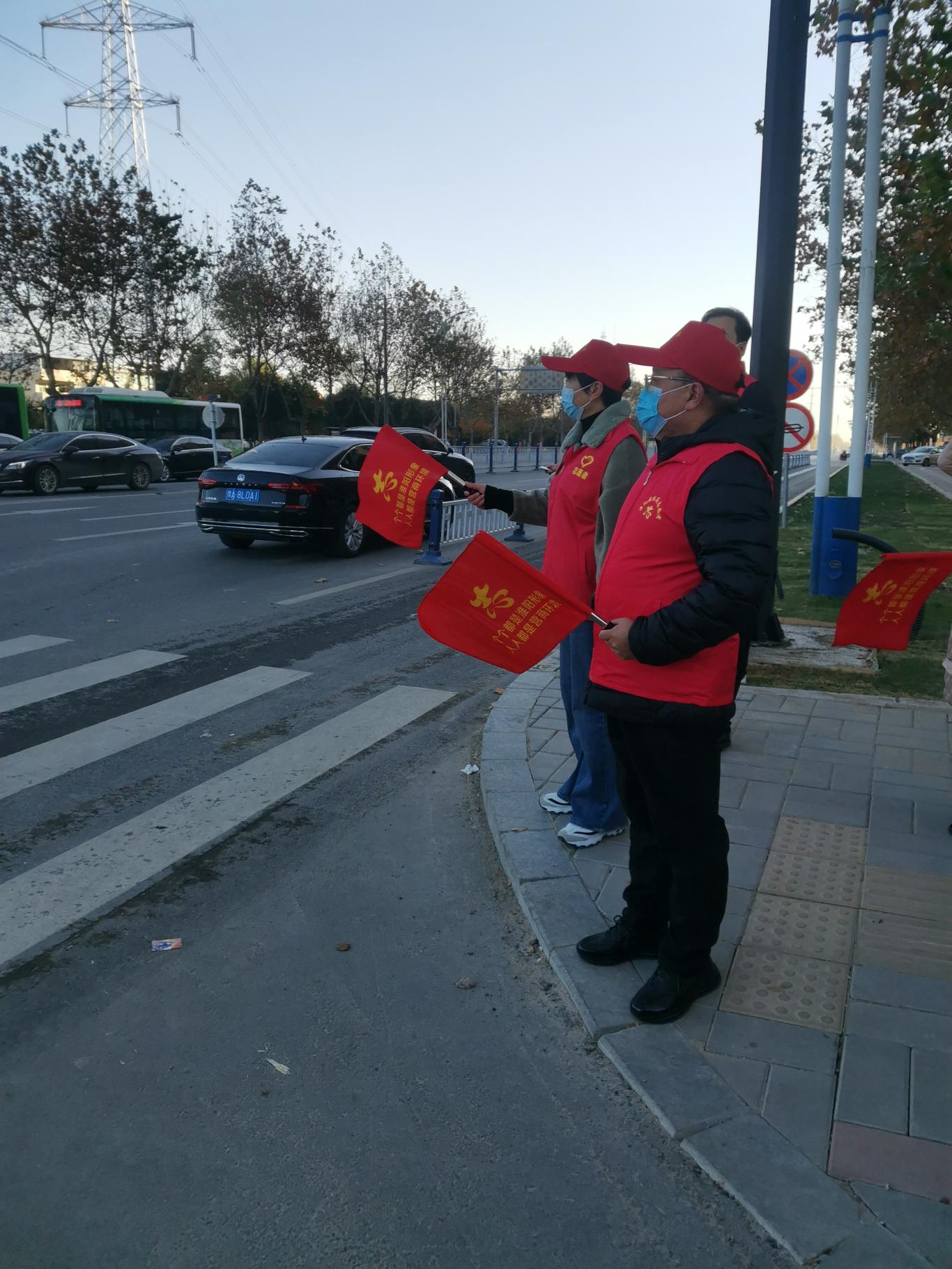 11月23日上午,淮陽區弦歌路與明信路(新民路)文明交通值勤路口集合了一群頭戴小紅帽,身著紅色馬甲,手拿小紅旗的志愿者,他們是淮陽區教體局的職工。為了實現交通文明勸導和優化營商環境標“雙勝利”,進一步營造“人人都是營商環境、個個都是淮陽形象”的濃厚氛圍,淮陽區營商辦組織開展了“別樣‘志愿紅’,助力優化營商環境活動”。