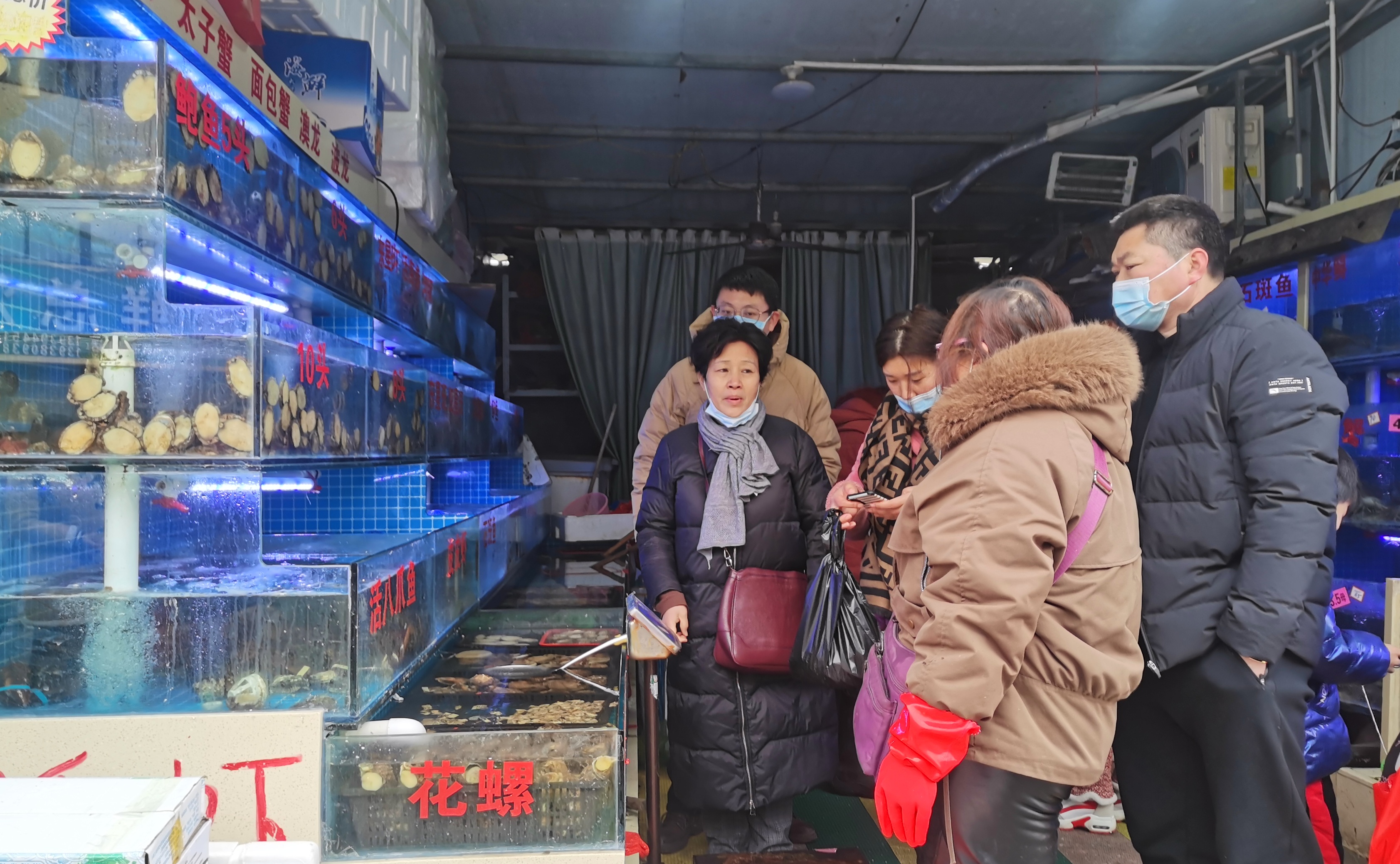 1月27日,黃淮大市場(chǎng)里人來(lái)人往,前來(lái)選購(gòu)的市民絡(luò)繹不絕。 春節(jié)臨近,市民置辦年貨的熱情越來(lái)越高,黃淮大市場(chǎng)內(nèi)年味十足,蔬菜、水產(chǎn)、熟食、副食品等分區(qū)鮮明,各種商品供應(yīng)充足,呈現(xiàn)購(gòu)銷(xiāo)兩旺態(tài)勢(shì)。②11