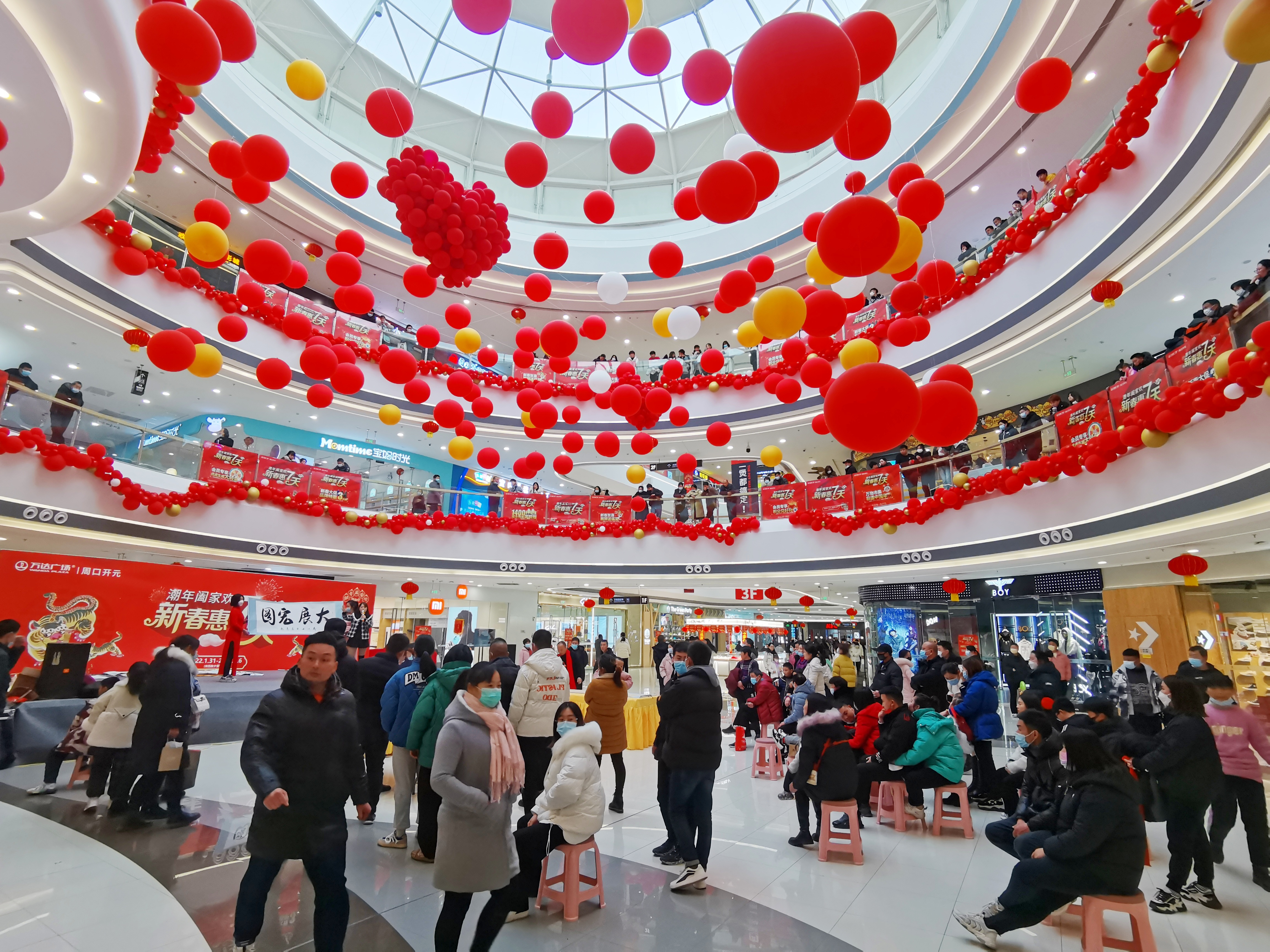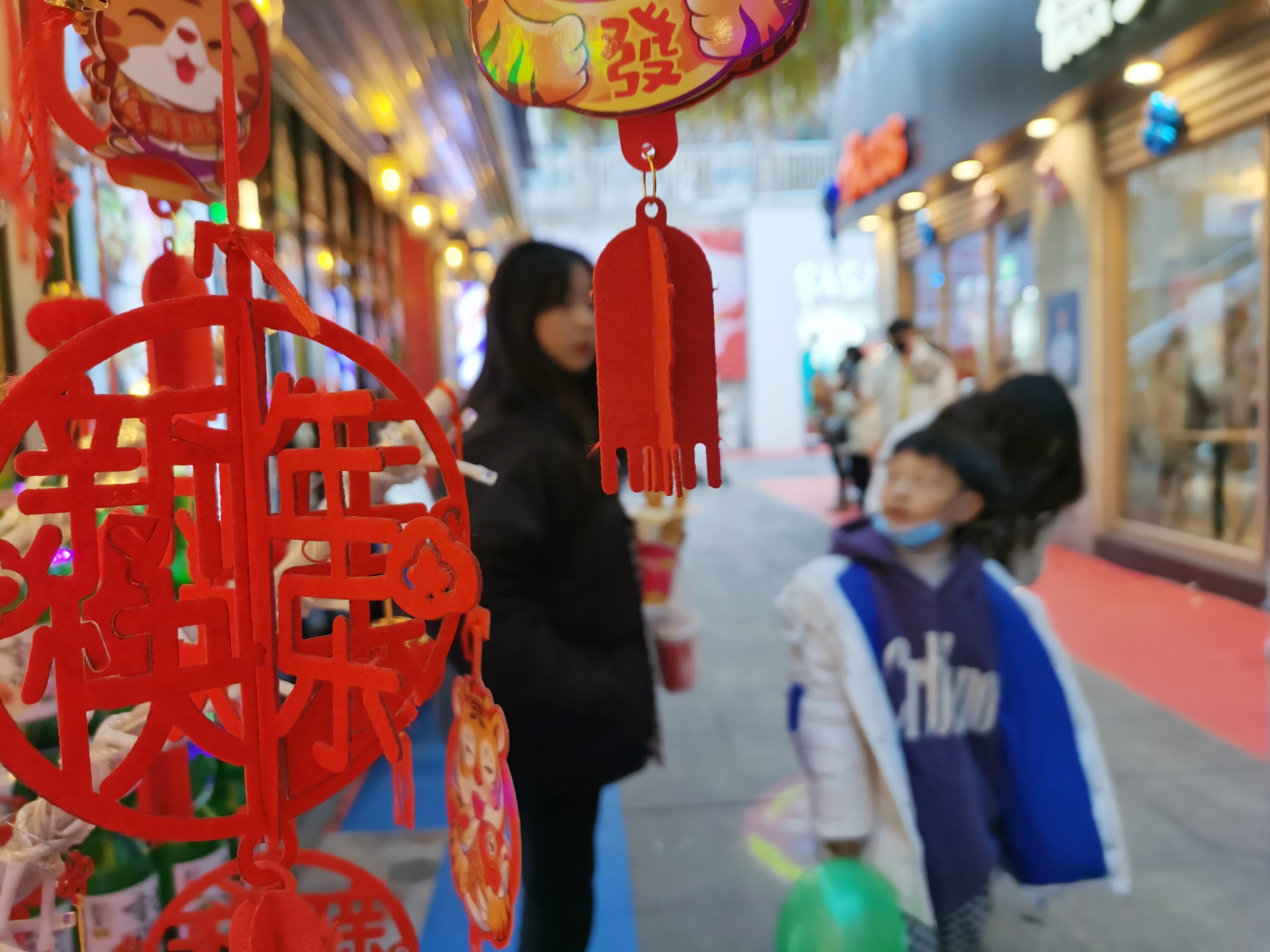 春節期間,中心城區各商場為烘托節日氣氛,用各種帶有濃郁喜慶色彩的燈籠、氣球等飾物進行裝飾,烘托濃烈年味,處處洋溢著一片歡樂幸福、喜慶祥和的氛圍。