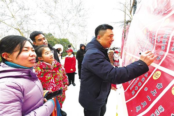 2月24日,市民踩著冰雪,來到周口華威民俗文化博物苑,參加在這里舉行的“我們的中國夢——文化進萬家”“百花迎新樂中原”2024周口元宵節燈謎競猜活動。