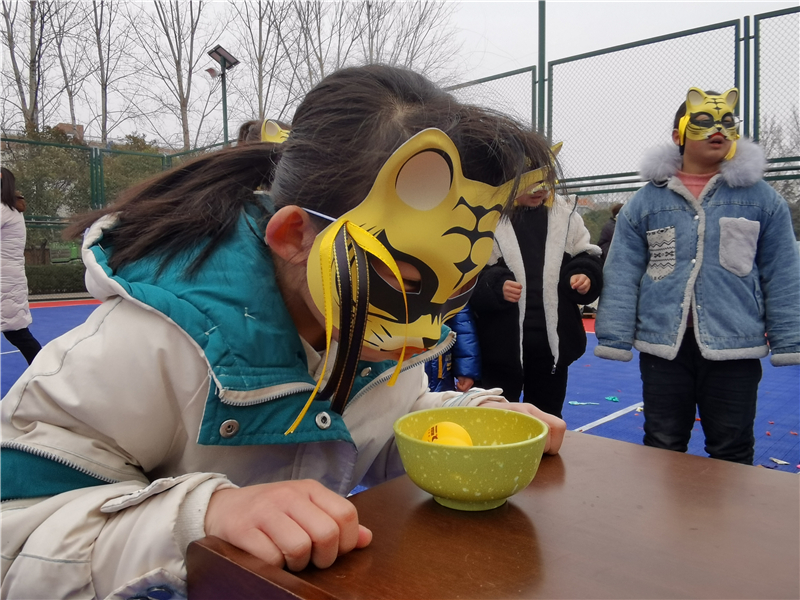 活動現場,一條條燈謎掛在繩上供大家思考,猜出謎底的“虎娃”開心地把燈謎撕下來找工作人員兌換獎品,玩得不亦樂乎。同時,元宵節的傳統食物元宵也出現在活動中,社工、志愿者設置的團團圓圓(歡樂夾元宵)游戲,用乒乓球代替元宵,讓“虎娃”們進行大比拼,大家從剛開始的不熟悉變為后來越來越默契,現場其樂融融。隨后,聲聲報福(踩氣球)游戲將活動推向高潮。