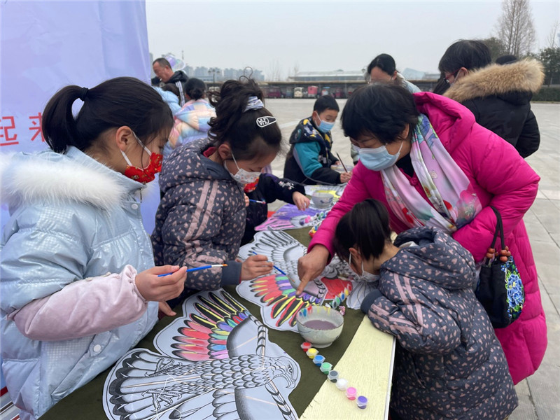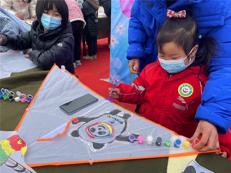 “媽媽你看,我畫的冰墩墩可愛嗎?”2月15日上午,“放飛春天——兒童DIY手繪風箏”活動在周口市文化藝術中心西廣場如期舉辦。一名身穿紅色棉服的小女孩在媽媽的幫助下,創作完成了一只畫有“冰墩墩”形象的手繪風箏。