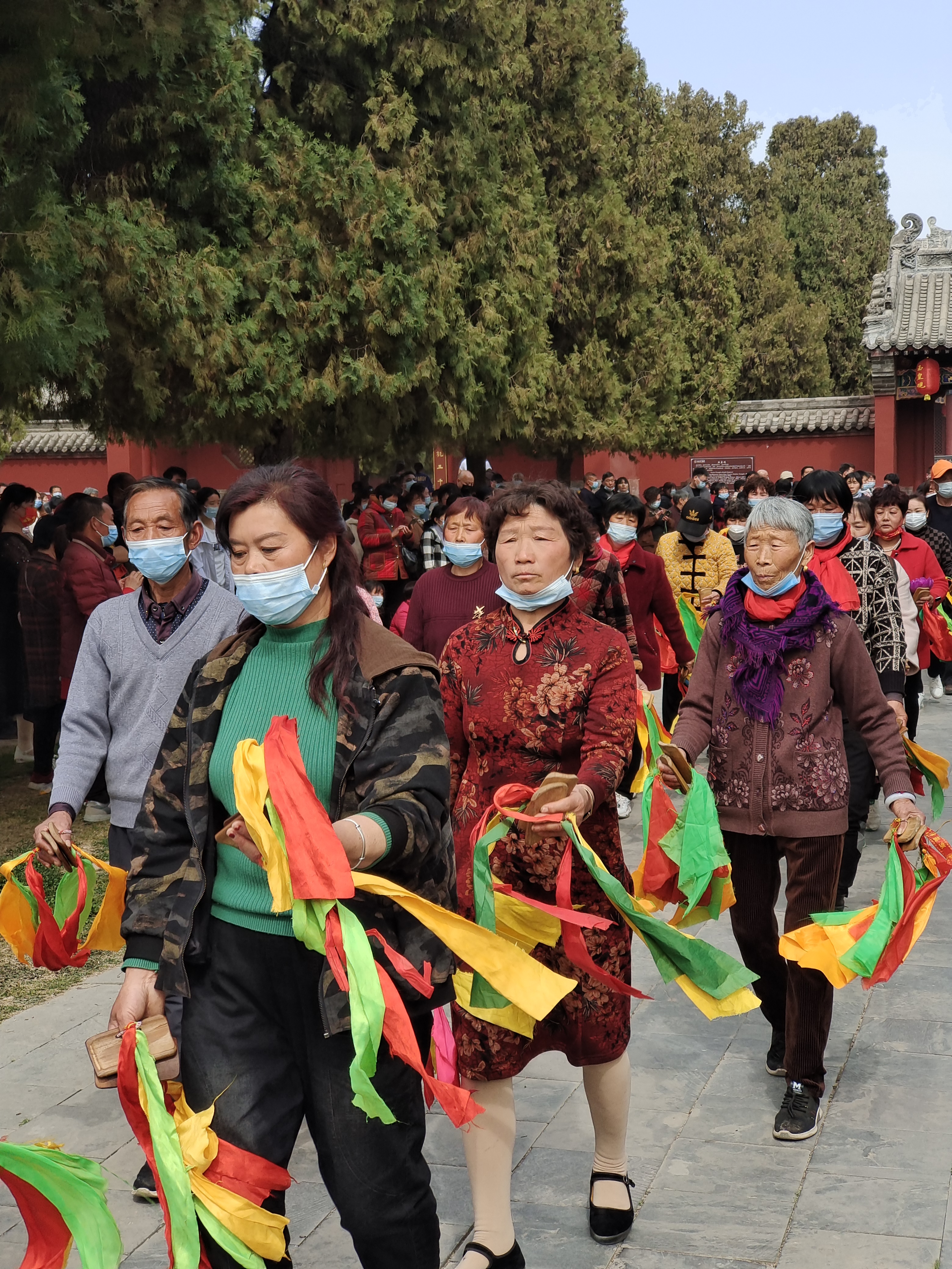 在疫情防控背景下,太昊陵中的子孫窯和岳飛觀暫時關閉。人們路過“子孫窯”時,會不自覺摸摸墻角;路過岳飛觀時,會雙手合十,帶孩子的會講岳飛的故事。變化之中,一些不變的照常進行:往碑刻上貼硬幣,祈求好運;站在千年耳柏前,向人祖伏羲低聲訴說著心事;繞伏羲大墓一周,添一把土……在淮陽區各職能部門的努力下,這一古老又現代的盛會平穩又精彩地運行著。②5