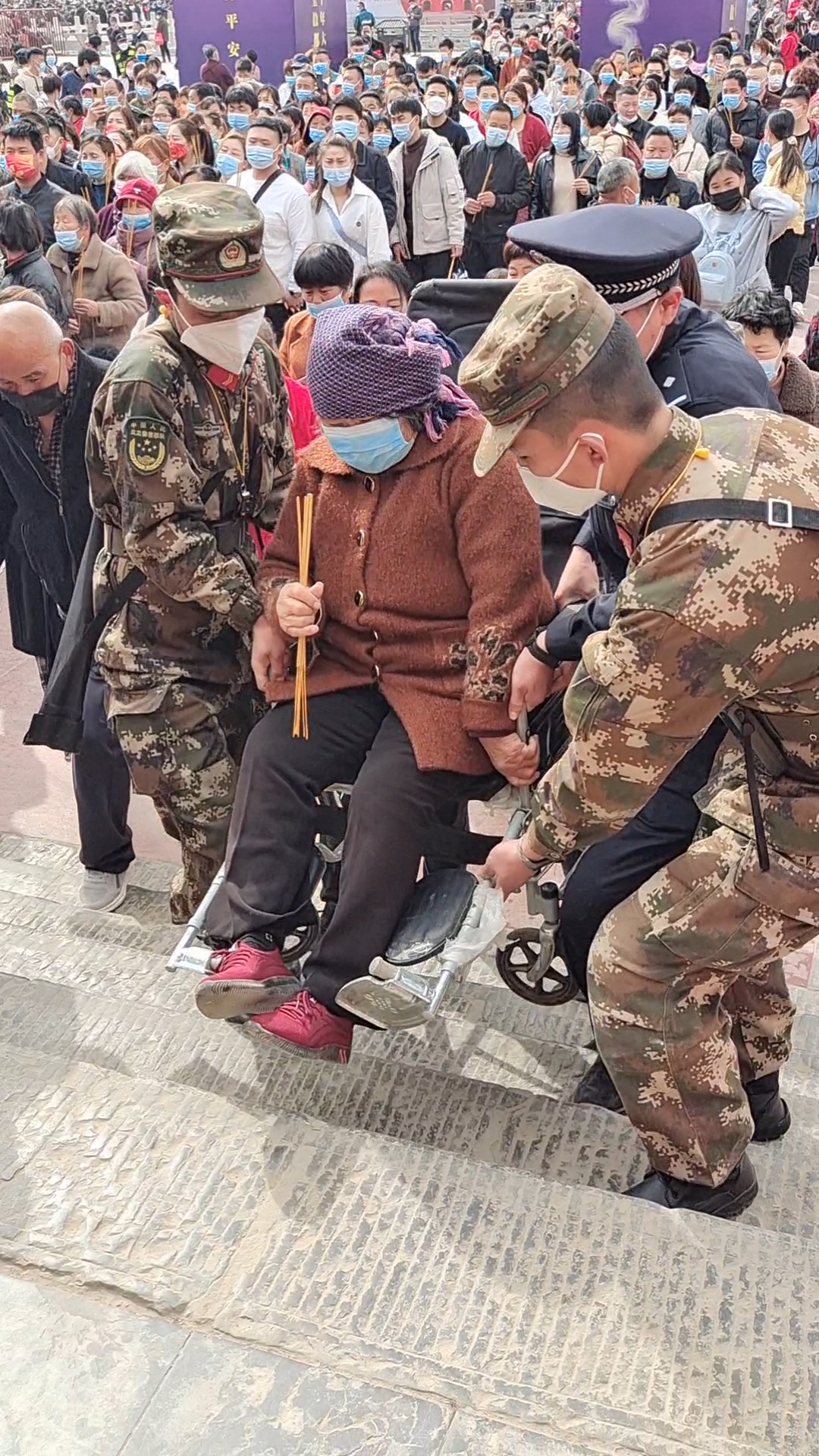 只要看到有腿腳不便的人上臺階不方便,附近的人民子弟兵立刻快步上前,扶上臺階。一位坐輪椅的老太太進不去午朝門,3位武警官兵、一名警察以及熱心群眾齊心協力抬起輪椅,穩穩地把老太太抬進門里。不等被幫助的人說聲“謝謝”,這些子弟兵就快速回到崗位,有人說他們戴著口罩看不到模樣,想知道他們的名字,他們說:“名字不重要,為人民服務最重要!”