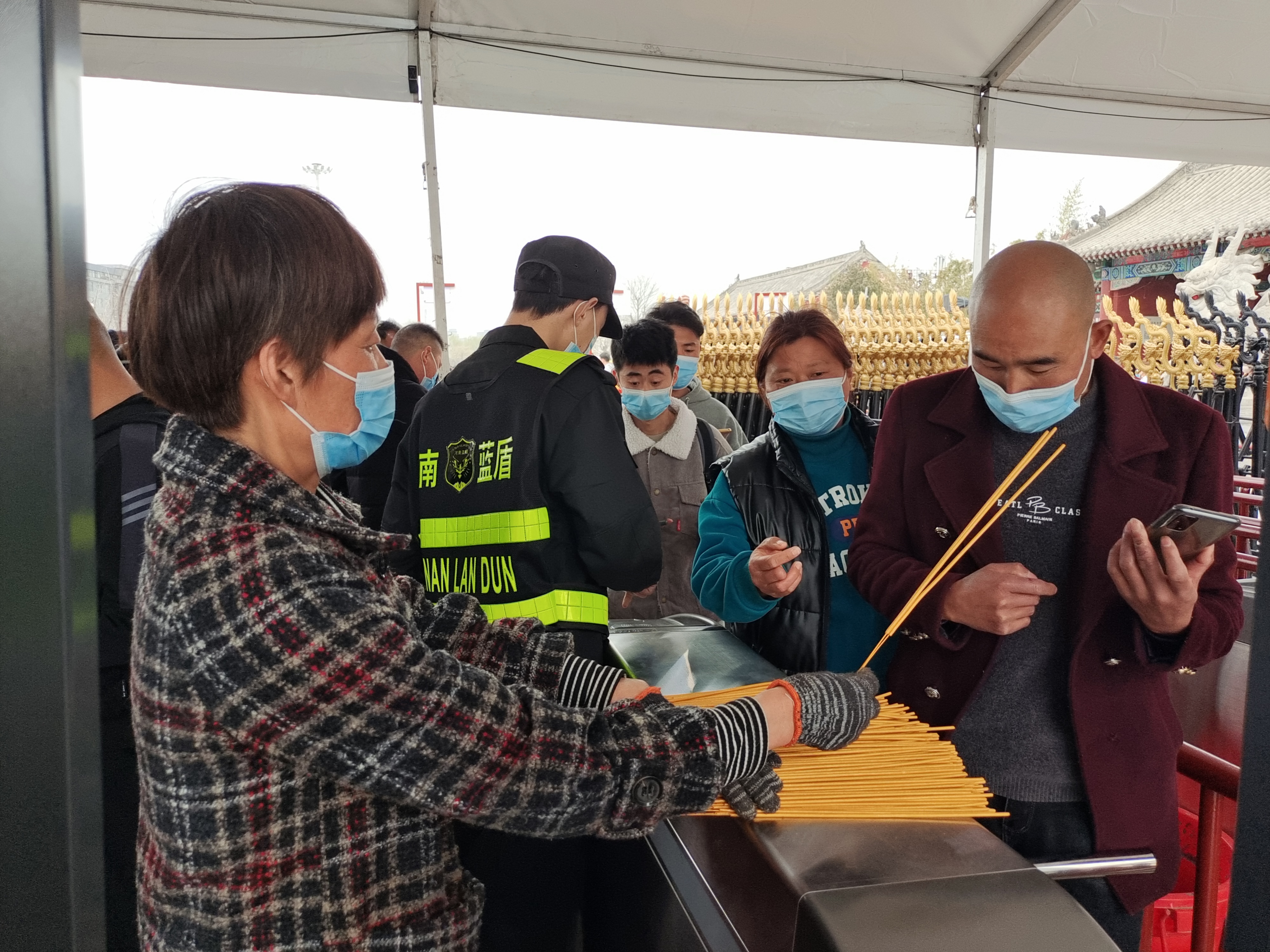 “這是您的祈福香,請拿好。”太昊陵的每個入口,既有專人檢查私自帶香行為,也有工作人員為游客免費發放線香。家住淮陽區的李姐是其中一員,她早上5時30分就到達景區,領取線香并整理,方便為游客發放。“只要還有游客來,我們就不休息,要把祈福的心愿送到他們手中,并引導他們文明燒香、文明祭祀。”李姐說。