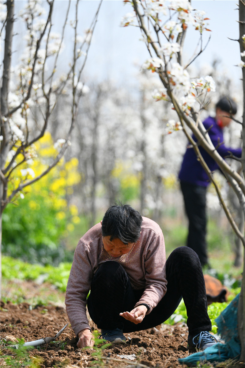 “谷雨前后,種瓜點豆。”距離谷雨節氣還有20多天,市城鄉一體化示范區文昌辦事處陳灘村的農民趁著雨后好墑情,在花開如雪的梨園深處除草、點種黃瓜籽。周口日報·周道客戶端記者 梁照曾 攝