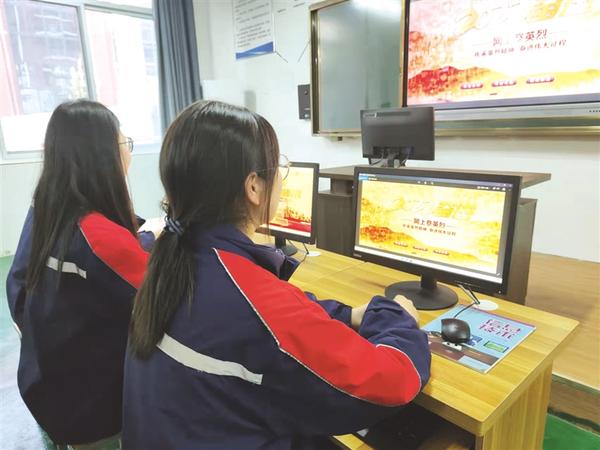 • 3月29日,項城市名仕路學校的兩名學生正在聽清明節網上祭奠英烈愛國主義思政課。