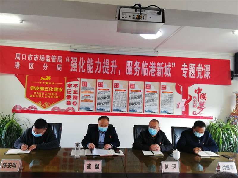 周口市市場監管局港區分局召開“強化能力提升 服務臨港新城”專題黨課